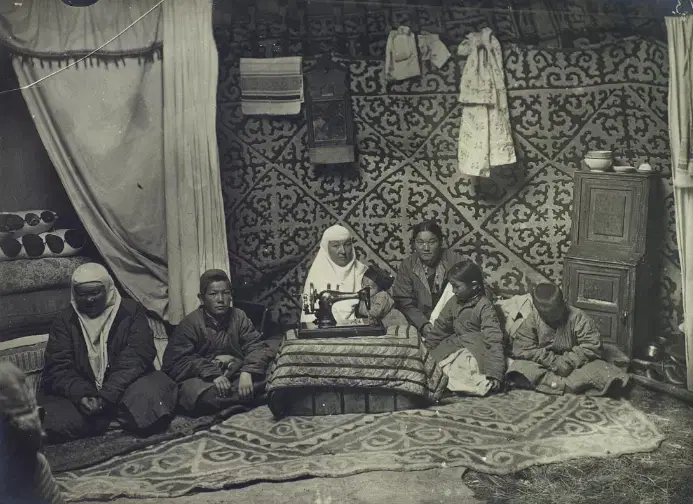 Ayollar va bolalar bоyning o'tovida. Qozoqlar. Qozog'iston, Semipalatinsk viloyati.